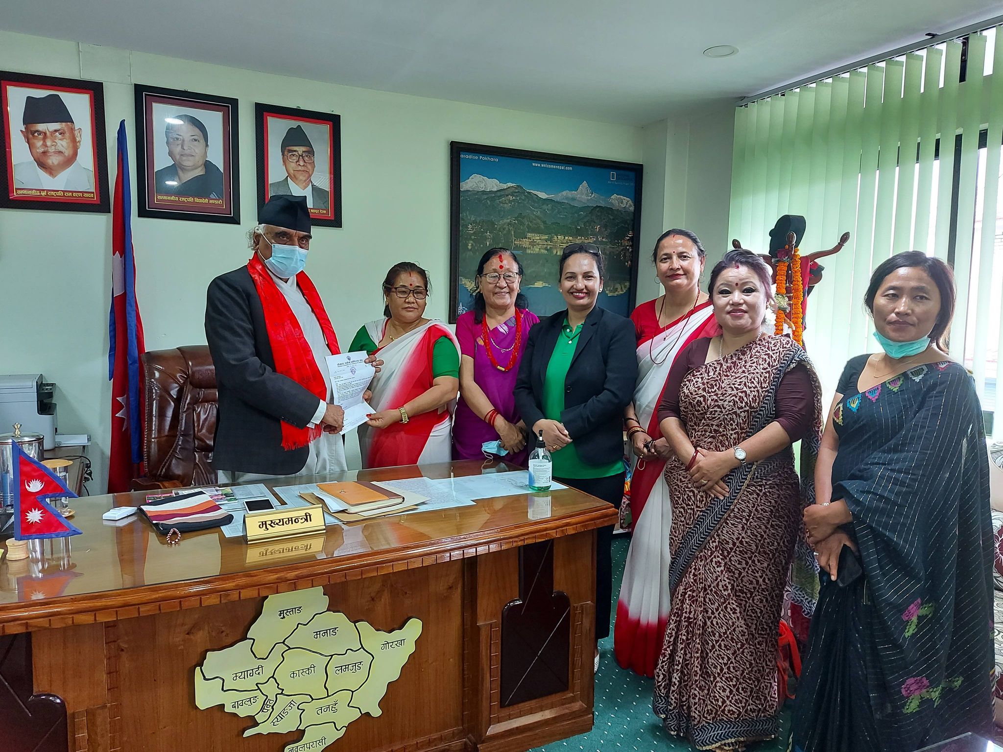 घरेलु तथा हस्तकला उपसमितिले बुझायो मुख्यमन्त्रीलाई ज्ञापनपत्र