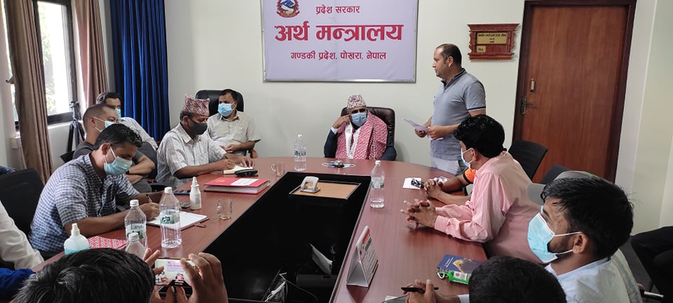 पोखराका पर्यटन व्यबसायीहरुले अर्थमन्त्री बराललाई मंगलवार मन्त्रालयमै भेटेर पाँच हजार खोप भए, पोखराको पर्यटन ब्यबसाय तँग्रिने जानकारी गराउनुभयो ।अर्थमन्त्री बरालले प्रदेश सरकारले खोप ब्यबस्थापन गर्न केन्द्र सरकारसँग पनि पहल हुने जानकारी पर्यटन व्यबसायीलाइ गराउनुभयो । पोखरा पर्यटन पर्यटन परिषदको नेतृत्वमा पोखराका अगुवा पर्यटनकर्मीहरु अर्थमन्त्रालय पुगेर अर्थ मन्त्री बराललाइ बधाई दिदै व्यबसायिक जिवन रक्षा कोषबाट समस्यामा परेका ब्यबसायीलाइ राहत दिन आग्रह गर्नुभयो ।