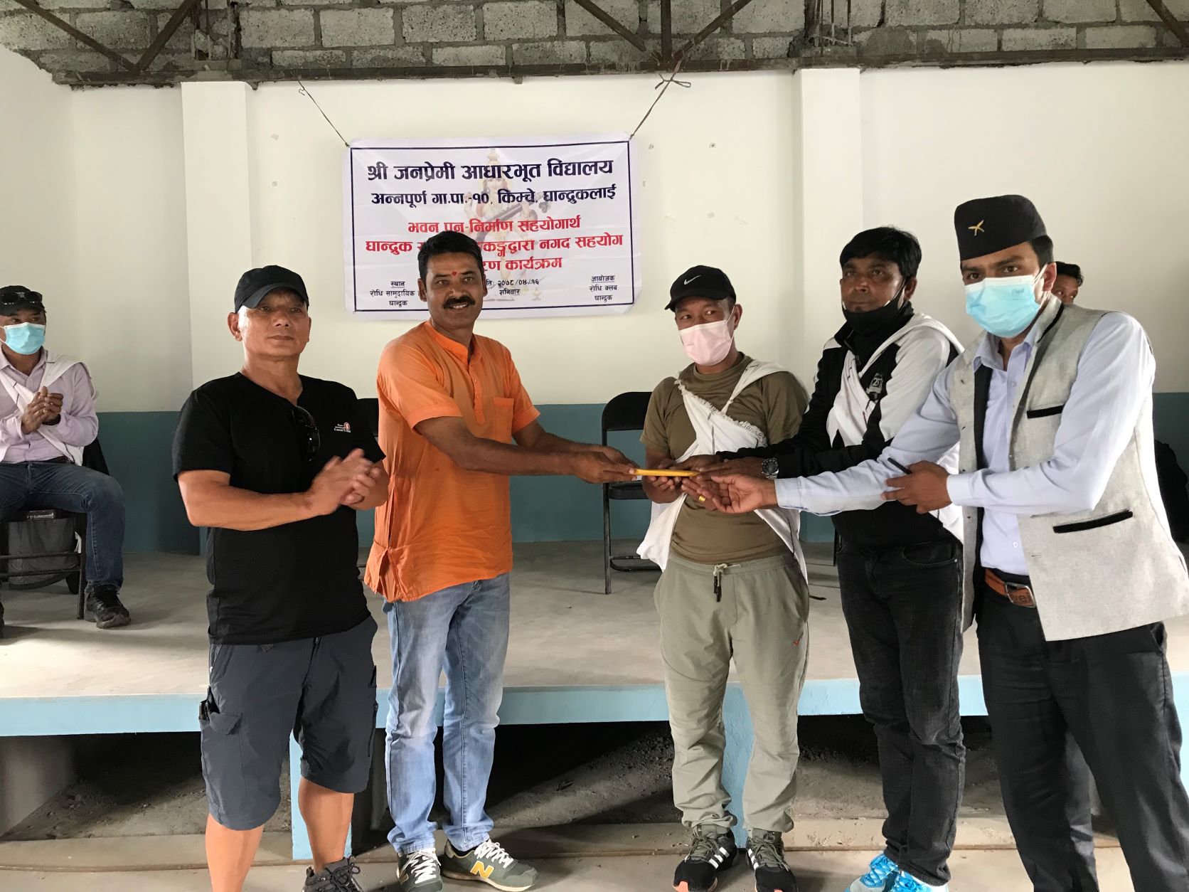 स्थानीय रोधी क्लब घान्द्रुकको सभाहलमा सम्पन्न कार्यक्रममा अन्नपूर्ण गाउँपालिका १० घान्द्रुकको किम्चे स्थित श्री जनप्रेमी आधारभुतबिधालय पुनर्निमाणको लागि घान्द्रुकका समाज हङकङले २ लाख र बेलायतले ५० हजार रकम उपलब्ध गराएको छ । सो रकमकार्यक्रमका प्रमुख अतिथि अन्नपूर्ण गाउँपालिका कास्कीका अध्यक्ष युवराज कुँवर घान्द्रुकका समाज हङकङका पूर्व अध्यक्ष चन्द्र गुरूङ, सचिव दीपक कुमार गुरूङ र घान्द्रुक समाज बेलायतका निवर्तमान अध्यक्ष अर्जुन गुरूङले बिधालय व्यवस्थापन समितिका अध्यक्षचन्द्रबहादुर बिक, भवन निर्माण समितिका अध्यक्ष सोमप्रसाद गुरूङ र बिधालयका प्रअ बाबुराम सापकोटालाई संयुक्त रूपमाहस्तान्तरण गरेका थिए । घान्द्रुक समाज बेलायतले अन्नपूर्ण क्लब किम्चेको भवन निर्माणका लागि ५० हजार रक़म उपलब्ध गराएको छ।