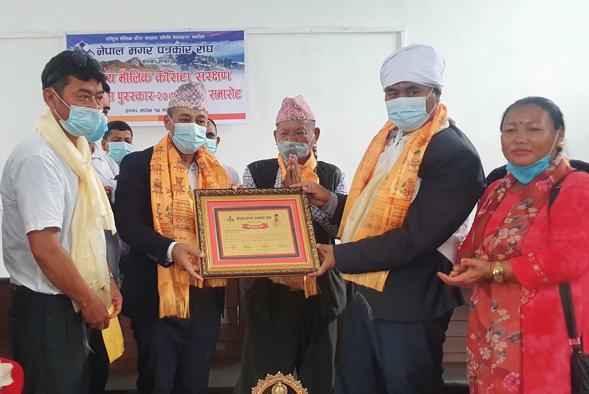 राष्ट्रिय मौलिक कौराहा संरक्षण समिति, नेपालद्वारा स्थापित सो पुरस्कारबाट एबीसी न्यूज टेलिभिजनका गण्डकी प्रदेश ब्यूरो प्रमुख समेत रहनुभएका पत्रकार मगर पुरस्कृत हुनुभएको हो । मगरलाई गण्डकी प्रदेशका कानून, सञ्चार तथा प्रदेशसभा मामिला मन्त्री विन्दुकुमार थापाले १० हजार रुपैयाँ नगद, ताम्रपत्र, फेटा र भाङ्ग्राले सम्मान गर्नुभएको थियो ।