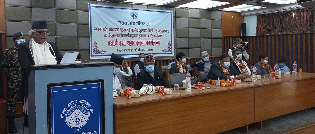 अर्थमन्त्री रामजी बराल जीवनले सानो बजेट लिए सरकार अगाडि बढेको भन्दै निजी क्षेत्रलाई साथमै लिएर आफूहरुले काम गर्ने बताए । पर्यटन, उद्योग, वाणिज्य तथा आपूर्ति मन्त्री मणिभद्र शर्मा कँडेलले व्यवासायीहरुलाई खोप प्रदान गर्न लागि परेको भनाइ राखे । कानुन, सञ्चार तथा प्रदेश मामिला मन्त्री बिन्दुकुमार थापाले सरकार आफैले व्यापार व्यवसाय गर्न नसक्ने भएकाले त्यस्तै खालको वातावरण बनाउनुपर्ने बताए । व्यवसायीहरु अहिले चौतर्फी मारमा परेको भन्दै उनले तर पनि उनीहरुको पहिलो माग खोप नै रहेको भन्दै यसका लागि प्रदेश सरकारले सहजीकरण गरिरहेको बताए । कम्पनी रजिस्टारको कार्यालय पोखरामा ल्याउन आवश्यक रहेको उनको भनाइ थियो । स्वास्थ्य तथा जनसंख्या मन्त्री मधुमाया अधिकारी गुरुङले समावेशिताका आधारमा विकास गर्नुपर्नेमा जोड दिइन् ।
