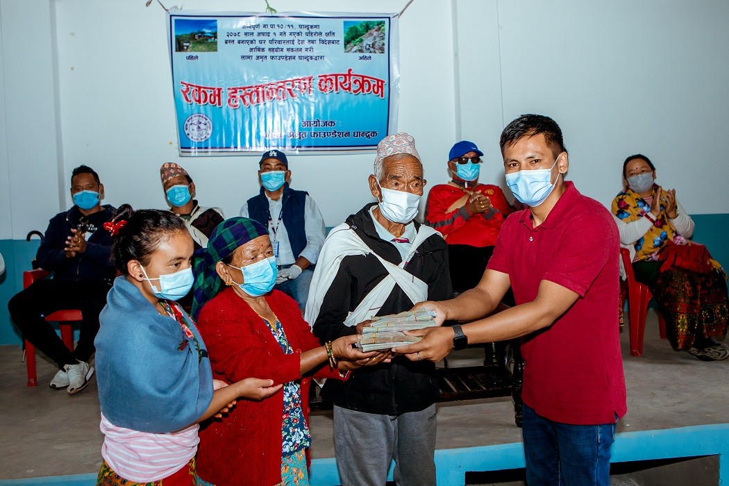 उनले स्वदेश तथा विदेशमा बस्ने सहयोग दाताहरु बाट छोटो समयमै जम्मा रु १३ लाख रकम संकलन भएको बताए। उनले भने; ” हाम्रो अनुरोधमा स्वदेश तथा विदेशमा बस्ने नेपाली तथा घान्द्रुके दाजुभाई तथा दिदीबहिनीहरुले सहयोग गर्नु भयो सोही रकम नै आज हस्तान्तरण गर्न पायौं । ”