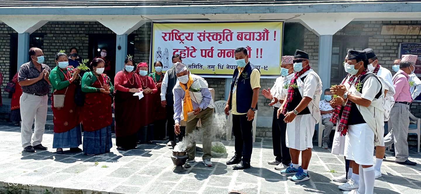 पोखरा, साउन २६/प्रत्येक वर्ष चैत्रको अन्तिम मंगलवार र साउनको अन्तिम मंगलवार धुमधामका साथ सामुहिकतामा मनाइने तमु समुदायको परम्परागत साँस्कृतिक पर्व विगत दुई वर्षदेखि तमु धिं नेपालले सांकेतिक रुपमा मनाउदै आएको छ। कोरोना कहरको बिच तमु धिं नेपालले तमु समुदायको परम्परागत साँस्कृतिक पर्व ट्होटें साउनको अन्तिम मंगलवार सांकेतिक रुपमा मनाएको हो। सँस्कृतिको संरक्षण, निरन्तरताका लागि सिमित संख्या मै भए पनि भौतिक दुरी कायम गर्दै सांकेतिक रुपमा पोखरा ९ नयाँबजारस्थित तमु धिं नेपालमा सांकेतिक रुपमा ट्होटें मनाइएको हो।