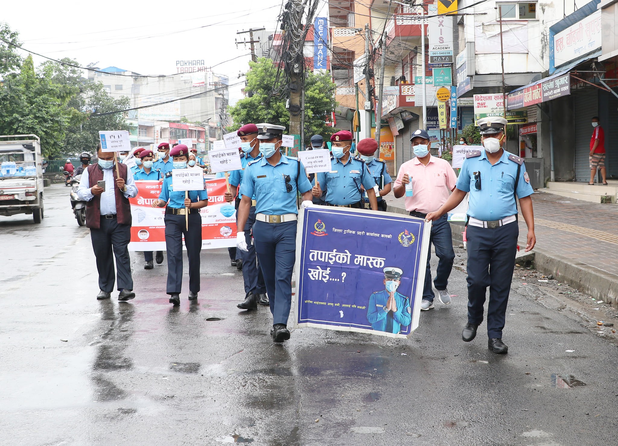 संक्रमण विरुद्ध आफू पनि बचौ र अरुलाई पनि बचाऔ भन्ने उदेश्यले “नियमित रूपमा साबुन पानीले हात धोऔं, सही तरिकाले मास्कको प्रयोग गरौं, सामाजिक दूरी कायम गरौं, अनावश्यक भीडभाड तथा जमघट नगरौं” जस्ता नारा लेखिएका प्लेकार्ड बोकी पोखराको सिद्धार्थ चोकदेखी महेन्द्रपुल सम्म ¥याली समेत आयोजना गरिएको थियो । कार्यक्रमा ५०० थान मास्क समेत वितरण गरिएको थियो ।