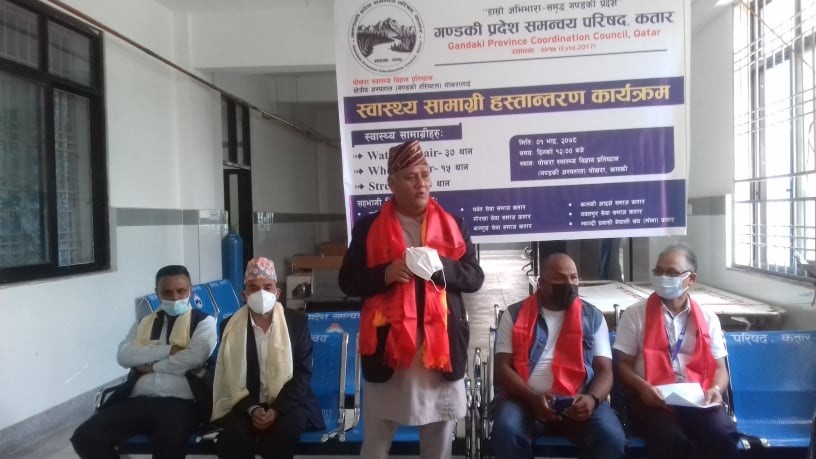 पोखरा, भदौ १ गते । गण्डकी प्रदेश समन्वय परिषद् कतारले पोखरा स्वास्थ्य विज्ञान प्रतिष्ठानलाइ ५ लाख ३७ हजार सामग्री सहयोग गरेको छ । परिषदले अस्पतालमा सेवाग्राहीलाई बस्नका लािग ३० चान कुर्ची, १५ वटा ह्वीचियर र ५ वटा स्टेचर सहयोग गरेको हो । मंगलबार एक कार्यक्रमका विच स्वास्थ्य विज्ञान प्रतिष्ठानमा आयोजित कार्यक्रममा गण्डकी प्रदेशका भौतिक योजना तथा पूर्वाधारमन्त्री कुमार खड्काले प्रतिष्ठानलाई उक्त सामग्री हस्तान्तरण गर्नुभयो ।