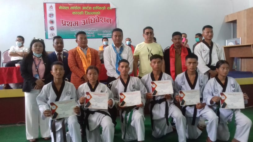 पोखरा, भदौ ३ गते । नेपाल मार्सल आर्टस हाप्किडो संघ कास्कीको प्रथम अधिवेशनले नयाँ कार्यसमिति चयन गरेको छ । बिहिबार पोखरा रंगशालामा भएको अधिवेशनले रविन गुरुङको अध्यक्षतामा नयाँ समिति निर्विरोध चयन गरेको हो । संघको उपाध्यक्षमा उपाध्यक्षमा शितल अधिकारी र महिला उपाध्यक्षमा कृती गिरी चयन भएका छन । त्यस्तै सचिवमा दयाराज भण्डारी र कोषाध्यक्षमा पवी गुरुङ निर्विरोध निर्वाचित भएका छन् ।