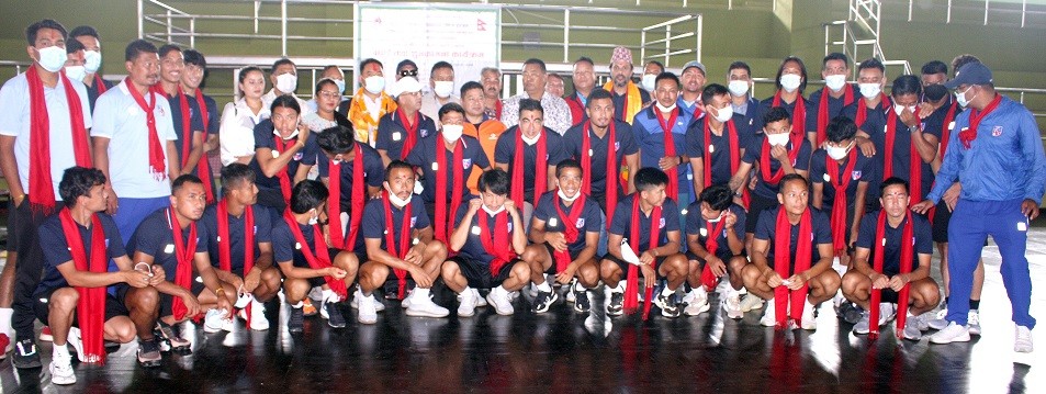 पोखरा रगशालाको बहुउद्देश्यीय कर्भडहलमा आयोजित कार्यक्रममा राष्ट्रिय टिमका खेलाडी, प्रमुख प्रशिक्षक र अफिसियलहरुलाई स्वागत गदै सम्मान गरिएको हो । प्रमुख प्रशिक्षक अब्दुल्लाह अलमुतैरीलाई ढाकाको टोपी लगाएर स्वागत सहित सम्मान गरिएको थियो । राखेप सदस्य राजेश गुरुङ, प्रदेश खेलकुदका उपाध्यक्ष ध्वजकुमार गुरुङ, प्रदेश सदस्यसचिव तेजबहादुर गुरुङ, जिल्ला खेलकुद विकास समितिका अध्यक्ष तोरण बानियाँ, महानगर खेलकुद विकास समितिका अध्यक्ष दीपकबहादुर गोदार, जिल्ला खेलकुद विकास समितिका कोषाध्यक्ष कञ्चन थापाले खादाँ लगएर राष्टिय फुटबल टिमका खेलाडीलाई स्वागत गर्नुभएको हो ।