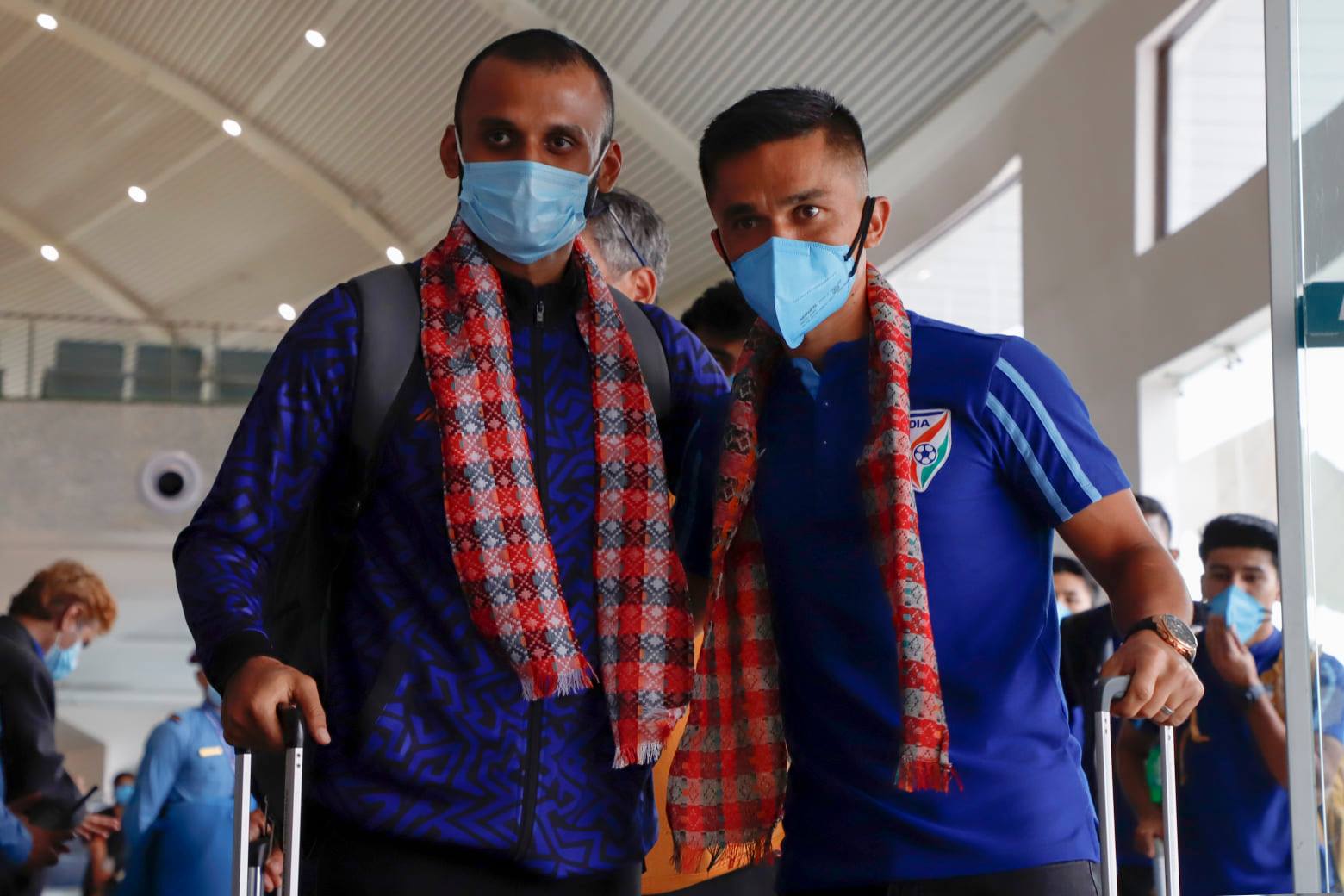 काठमाडौं । भारतीय राष्ट्रिय फुटबल टोली नेपालसँगको मैत्रीपूर्ण खेलका लागि सोमबार नेपाल आइपुगेको छ ।भदौ १७ र २० गते त्रिपुरेश्वरस्थित दशरथ रंगशालामा हुने खेलका लागि कप्तान सुनिल क्षेत्रीसहित २५ सदस्यीय टोली केही बेरअघि त्रिभुवन अन्तर्राष्ट्रिय विमानस्थल उत्रिएको हो ।