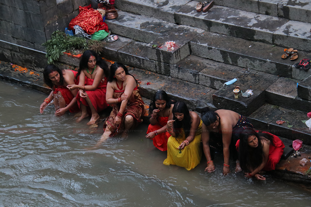 काठमाडाैं । आज ऋषिपञ्चमी हिन्दू नेपाली नारीले अरुन्धतीसहित सप्तऋषिको पूजा आराधना गरी मनाउँदैछन् । महिलाले आज बिहानै उठेर नित्य कर्म गरी नजिकको नदी, खोला, ताल, तलैया र पोखरीमा गई ३६५ वटा दत्तिवनले दाँत माझ्ने, गाईको गोबर, माटो एवं खरानी लगाई स्नान गर्दछन् ।वागमतीको गौरिघाटमा स्थान गरी सप्तऋषिको पूजा गर्नेहरुको भीड लागेको छ । कोरोना महामारीका कारण स्थानीय प्रशासनले घरमै पूजा गर्न भने पनि दर्जनौंको संख्यामा व्रतालुहरु नजिकको गंगामा स्नानका लागि पुगेका छन् ।