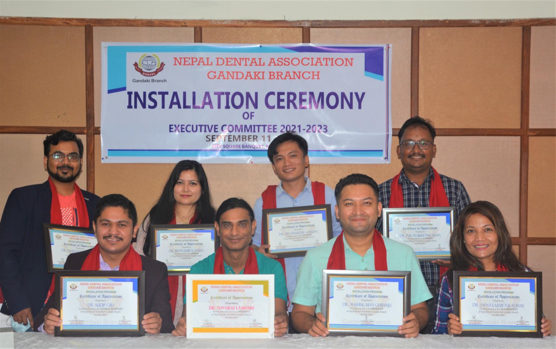 नेपाल डेण्टल असोसीएशन गण्डकी शाखाको बर्ष २०२१-२०२३ को नया कार्यसमिति निर्वाचित भएको छ । पोखरा न्यूरोडको सिटी स्क्याएर बैंक्वेटमा सनिबार भएको कार्यक्रममा डा. अभिषेक मान ग़ुबाजु को अध्यक्षता मा नया कार्यसमिति सर्वसम्मतिमा निर्वाचित भएको हो । संस्थाको उपाअध्यक्षमा डा. सपना लक्ष्मी तुलधार, महासचिवमा डा. सुदिप गिरी, कोषाध्यक्षमा डा. मिन बहादुर गुरुङ , संयुक्त सचिबमा डा. सुष्मिता थापा र सदस्यमा डा. बिनिता बजरचार्य, आशीष कुंवर सिंह, डा. पुरन बिशोकर्मा तथा डा. संगीता मकाजु रहनुभएको छ ।