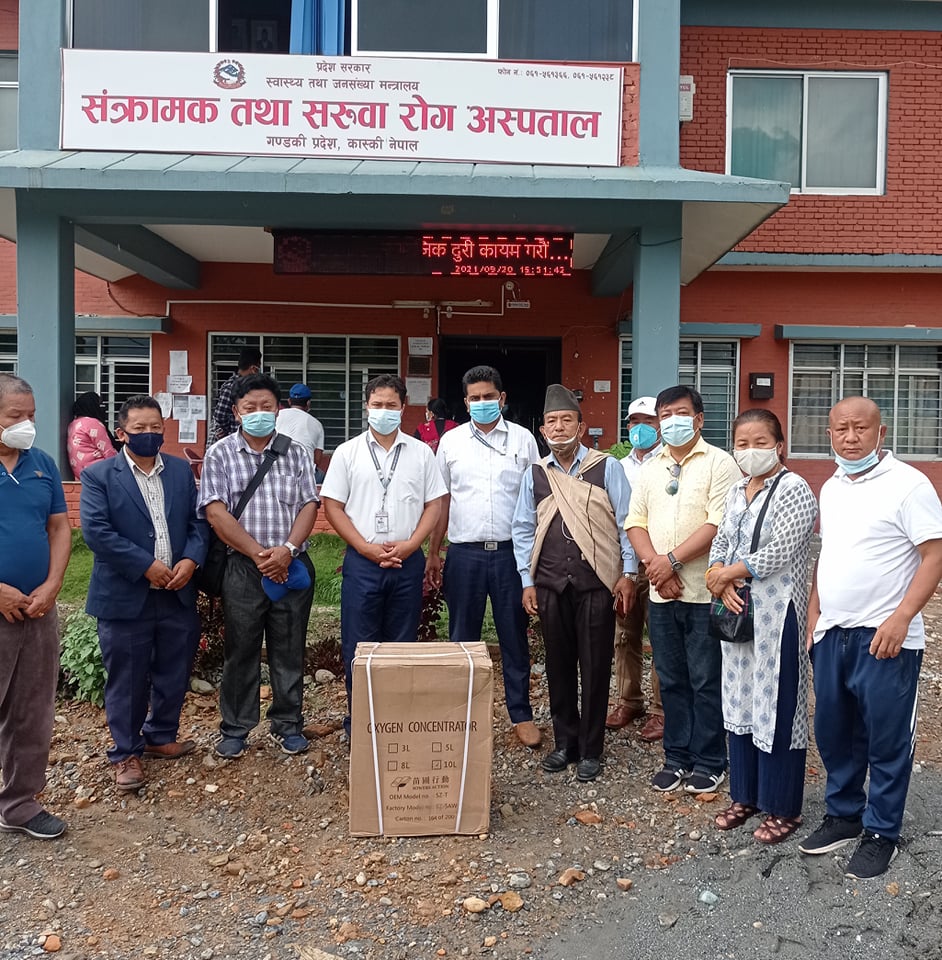 कास्कीका लागि प्राप्त ४ अक्सिजन कन्र्सनट्रेटर मध्ये मध्ये २ वटा पोखरा स्वास्थ्य विज्ञान प्रतिष्ठान पश्चिमाञ्चल(गण्डकी)क्षेत्रीय अस्पताल, १ वटा पोखरा १६ अर्मलास्थित अर्मला स्वास्थ्य चौकी र १ वटा पोखरा ३० मोहरियास्थित संक्रामक तथा सरुवा रोग अस्पताल हस्तान्तरण गरिएको तमु धिं नेपालका अध्यक्ष हुमबहादुर गुरुङले बताउनुभयो।