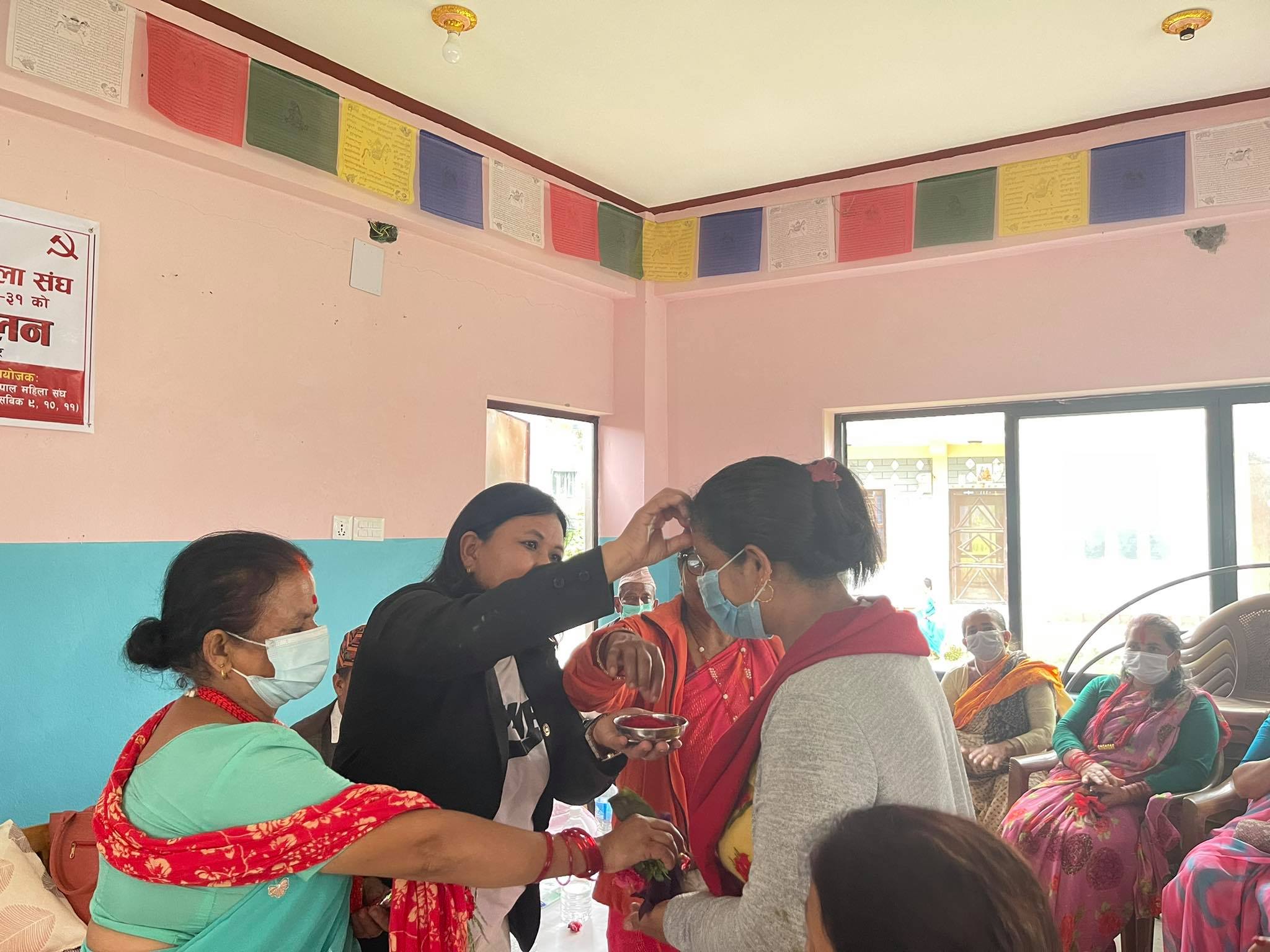 कार्यक्रम धनदेवी अधिकारीको अध्यक्षतामा सम्पन्न कार्यक्रमको सञ्चालन सावित्री ढकाल तिवारी र स्वागत निर्मला ढकालले गर्नुभएको थियो । नवनिर्वािचत कमिटिलाई कार्यक्रमका प्रमुख अतिथि एवं अनेसंघ केन्द्र्रीय सचिवालय सदस्य तारामाया थापा मगरले सपथ खुवाउनु भएको थियो ।