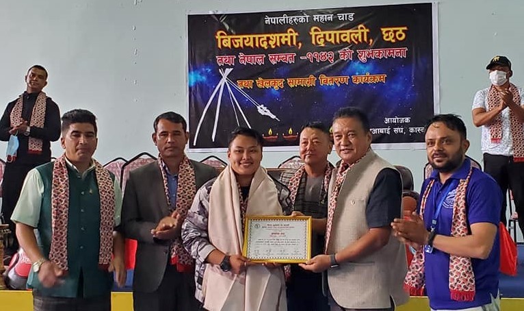 पोखरा, असोज २२ गते ।काठमाडौमा सम्पन्न कराँते च्याम्पियनसिपमा महिला तर्फको खुला तौल समूहमा स्वर्ण पदक विजेता सुष्मी श्रेष्ठलाई सम्मान गरिएको छ । मुआथाइ संघ कास्कीले शुक्रवार पोखरा रंगशालामा आयोजना गरेको वडा दशै, दिपावली र छठ पर्वको शुभकामना आदान प्रदान कार्यक्रममा सुष्मीलाई सम्मान गरिएको हो ।