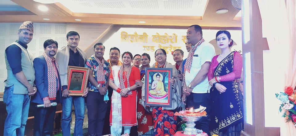 शुभारम्भको अवसरमा दोहोरीसाँझले पत्रकार राजाराम पौडेल सम्मान गरेको छ । पत्रकार पौडेललाई नेपाल संगीत तथा नाट्य प्रज्ञा प्रतिष्ठानका प्राज्ञ तथा लोकसंगीत विभाग प्रमुख वरिष्ठ गायिका हरिदेवी कोइरालाले सम्मान गरेकी हुन् । पत्रकारिताको माध्यमबाट लोकसंगीतको क्षेत्रमा पु¥याएको योगदानको कदर गर्दै सम्मान गरिएको सञ्चालक दर्नालले बताए । रेडियो अन्नपूर्णमा आवद्ध पत्रकार पौडेल रंगपत्रकारिता क्षेत्रमा क्रियाशिल छन् ।