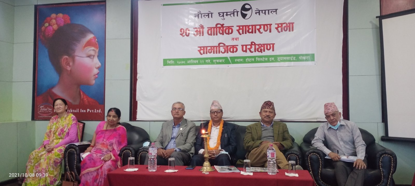 पोखरा । राष्ट्रिय स्तरमा सामाजिक कार्यमा सकृय गैरसरकारी संस्था नौलो घुम्ती नेपालको २० औं बार्षिक साधारण सभा तथा सामाजिक परिक्षण शुक्रबार सम्पन्न भएको छ ।