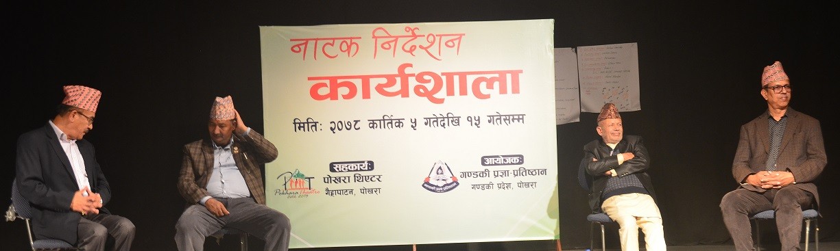राजाराम पौडेल, पोखरा, कात्र्तिक ६ गते ।पोखरामा गण्डकी प्रदेश स्तरिय नाटक निर्देशन कार्यशाला शुक्रबारबाट सुरु भएको छ । कार्यशालाको गण्डकी प्रदेशका शिक्षा संस्कृति, विज्ञान प्रविधि तथा सामाजिक विकास मन्त्री मेखलाल श्रेष्ठले एक औपचारिका कार्यक्रमकाबिच उद्घाटन गर्नुभयो ।