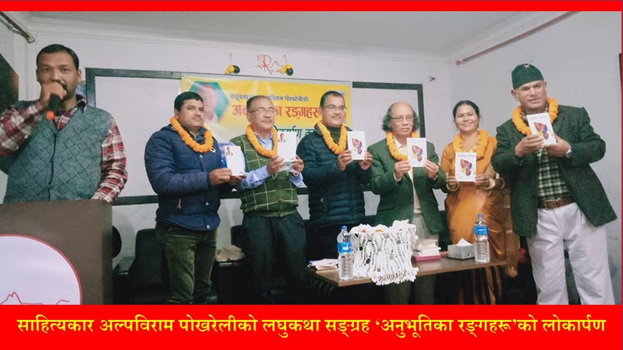 पोखरा,मंसिर १२ गते । साहित्यकार अल्पविराम पोखरेलीको पाँचौँ कृति ‘अनुभूतिका रङ्गहरू’ लघुकथा सङ्ग्रह शनिबार पोखरामा लोकार्पण गरिएको छ ।कृतिको लोकार्पण नेपाल सङ्गीत तथा नाट्य प्रज्ञा–प्रतिष्ठानका पूर्व कुलपति सरुभक्तले गरेका हुन् । आख्यानको एक चाटिलो विधाका रूपमा लघुकथा स्थापित भएको भन्दै सरुभक्तले मुक्तक र कवितामार्फत् विशिष्ट परिचय बनाइसकेका अल्पविरामको लघुकथाप्रतिको लगाव प्रशंसनीय रहेका बताए । उमेरको परिपक्वता बढ्दै जाँदा पनि लेखाइमा थप जाँगरका साथ व्रिmयाशील भएर अल्पविरामले नयाँ पुस्तालाई प्रेरणा दिइरहेको उनको भनाइ थियो ।