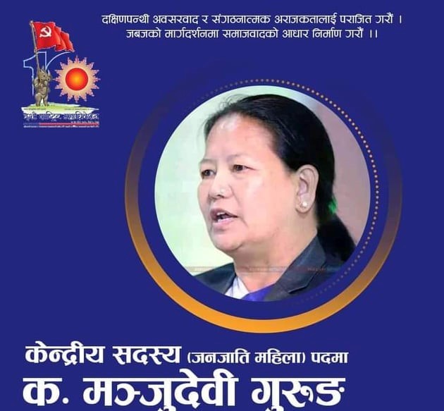 पोखरा, मंसिर १२ गते। पोखरा महानगरपालिका कार्यबाहक प्रमुख मञ्जुदेवी गुरुङद्धारा नेकपा एमालेको केन्द्रीय सदस्यमा उम्मेदवारी घोषणा गर्नुभएको छ ।