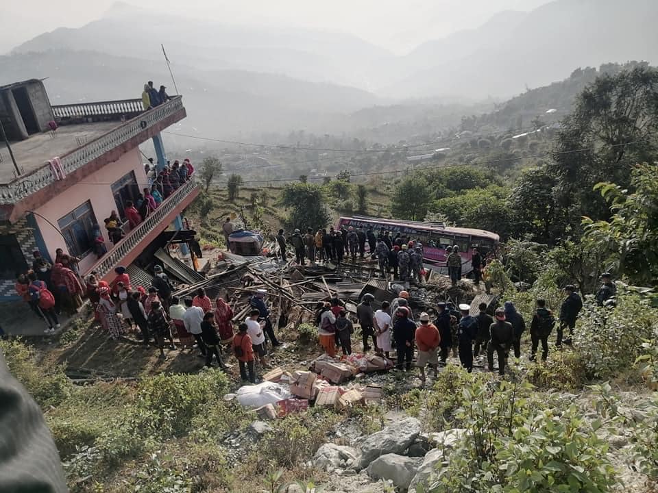 कास्कीको अन्नपूर्ण गाँउपालिका अन्नपुर्ण ३ पाउदुरमा आज विहान भएको बस दुर्घटना ।