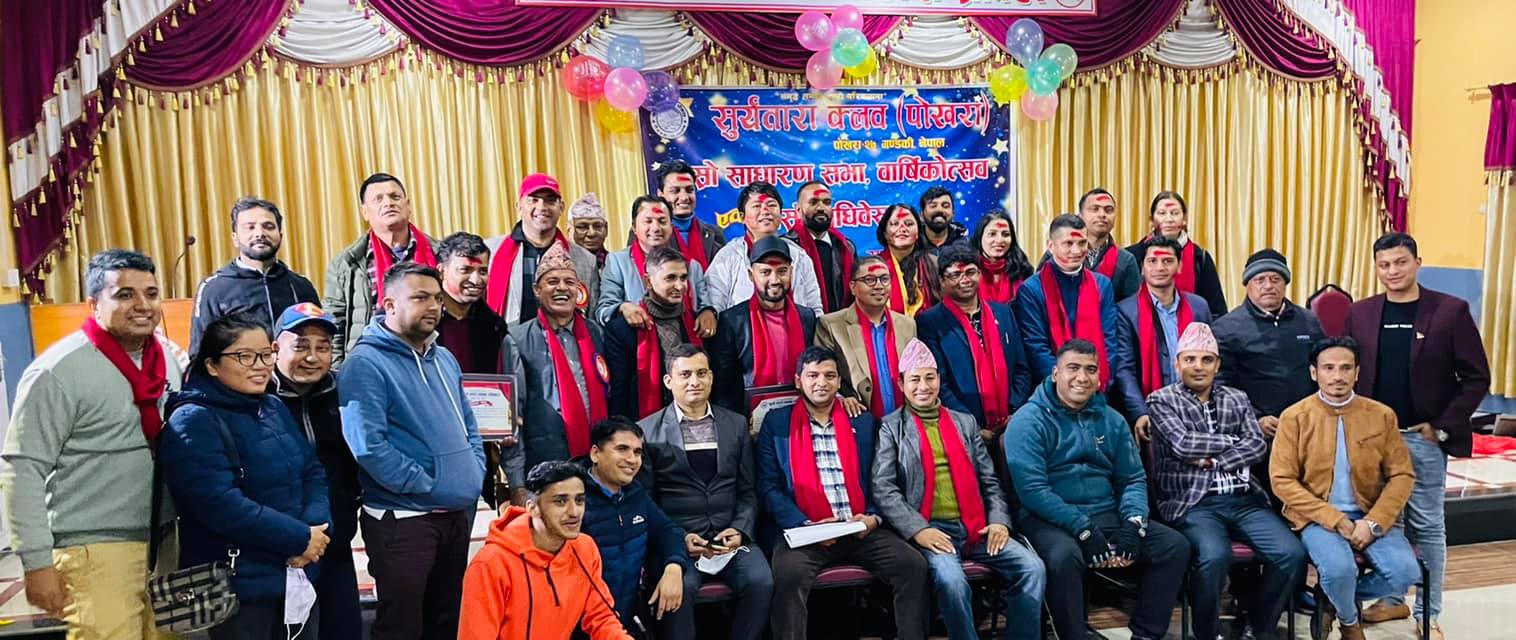 पोखरा, मसिर २२ गते ।सुर्य तारा क्लब (पोखरा)पोखरा २७ गण्डकी प्रदेश नेपाल को तेस्रो साधारणसभा वार्षिकोत्सब तथा दोस्रो अधिबेशन सम्पन्न भएको छ । क्लबको दोश्रो अधिवेशनले अध्यक्षमा बिष्णु पुनलाई चयन गरेको छ । पुन यसअघि पनि अध्यक्ष थिए । क्लबको उपाध्यक्ष त्रयमा रामचन्द्र तिमिल्सिना ,कृष्ण प्रसाद अधिकारी र मोहन सुवेदीलाई चयन गरेको छ ।