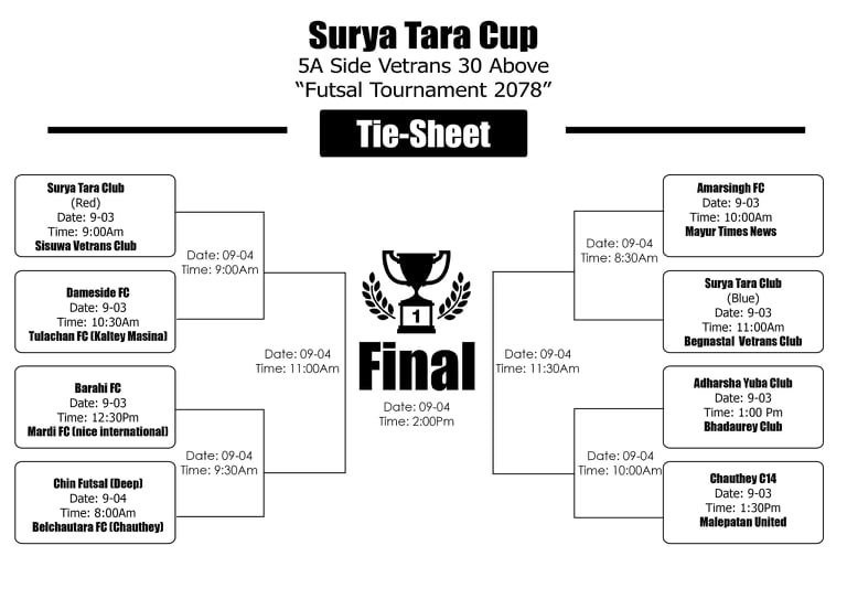 सुर्य तारा भेट्रान्स कप फुटसल प्रतियोगिताको खेल तालिका सार्वजनीक