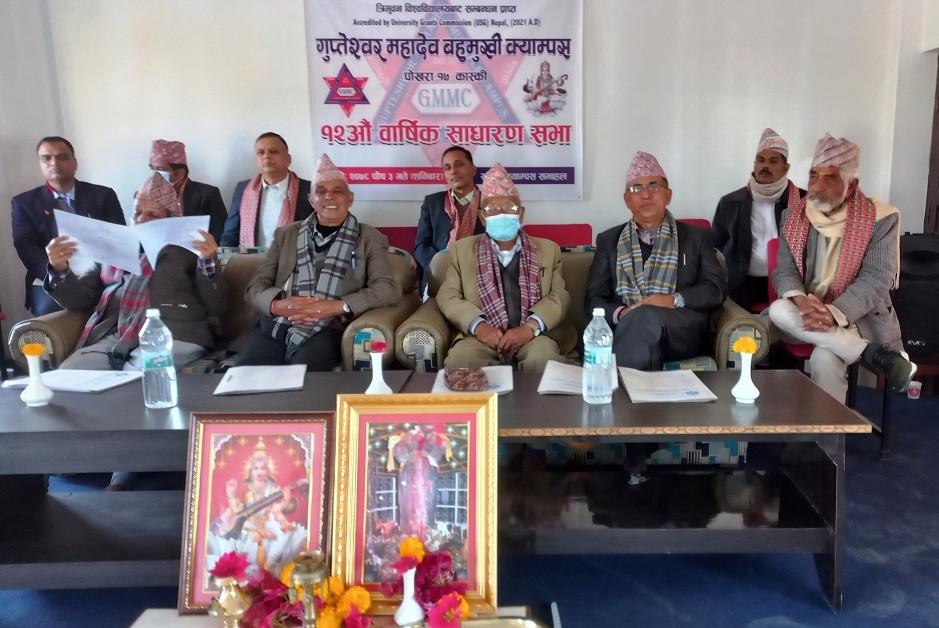 गण्डकी, पुस ३ गते । छोरी बुहारीको अध्ययनको थलोको रुपमा परिचित गुप्तेश्वर महादेव बहुमुखी क्याम्पस पोखरा १७ छोरेपाटनको १२ औं साधारण सभा सम्पन्न भएको छ ।पर्यटकीय स्थल गुप्तेश्वर गुफाको अवलोकनमा आउने पर्यटकलाई बिक्री गरेको टिकटबाट संकलित रकमले स्थापना गरि सञ्चालनमा आएको सो क्याम्पसका बिभिन्न संकायमा अध्ययरत कूल ७७२ जना विद्यार्थी मध्ये ५०७ जना छात्रा रहेका छन् ।