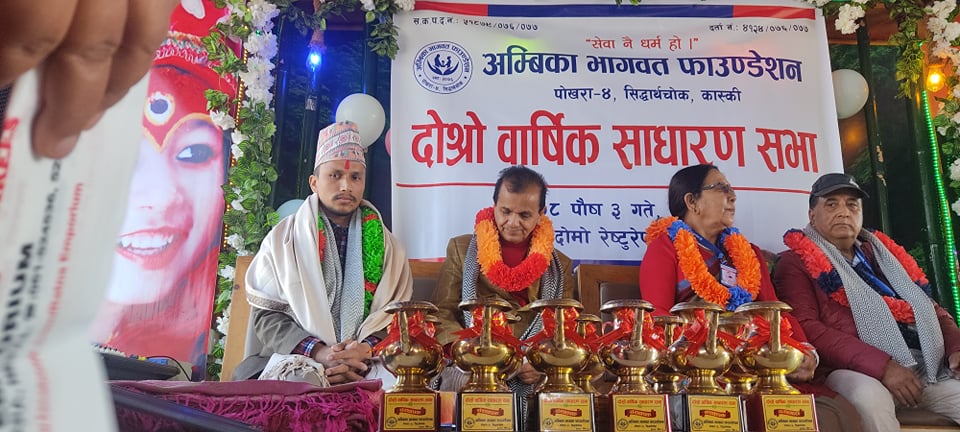 पोखरा, पुस ४ गते ।अम्बिका–भागवत फाउण्डेशनले दोस्रो वार्षिक साधारण सभाका बीच सङ्घर्षशील र सिर्जनशील प्रतिभालाई सम्मान तथा पुरस्कार अर्पण गरेको छ ।फाउण्डेशनद्वारा सञ्चालित हरेक दुई वर्षमा अर्पण गरिने सङ्घर्षशील सामाजिक पुरस्कार–२०७८ बाट सङ्घर्षशील सामाजिक अभियान्ता असफल गौतम सम्मानित भए । उक्त पुरस्कारको राशि २५ हजार एक सय ५१ रहेको थियो ।