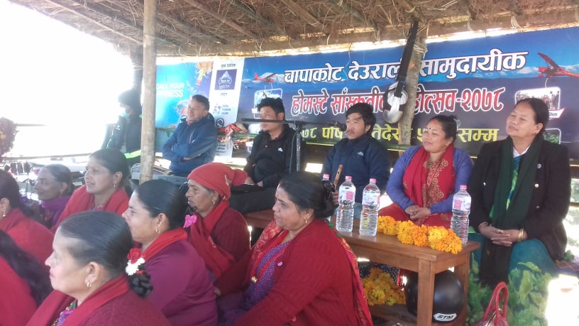 संस्कृति संरक्षण गदै युवा पुस्ताललाई आफनो संस्कार र संस्कृतिप्रति जागरुक बनाउनुपर्ने बताउनुभयो । उहाँले गाँउमा आउने पर्यटकको बसाई लम्ब्याउने र स्थानीय उत्पादनमा जोड दिनुपर्ने बताउनुभयो । होमस्टेमा आउनेहरुलाई स्थानीय उत्पादन खान पाउने वतावरण सृजना भए स्थानीयको आयस्रोत बृद्धि समेत हुने विश्वास ब्यक्त गर्नुभयो ।