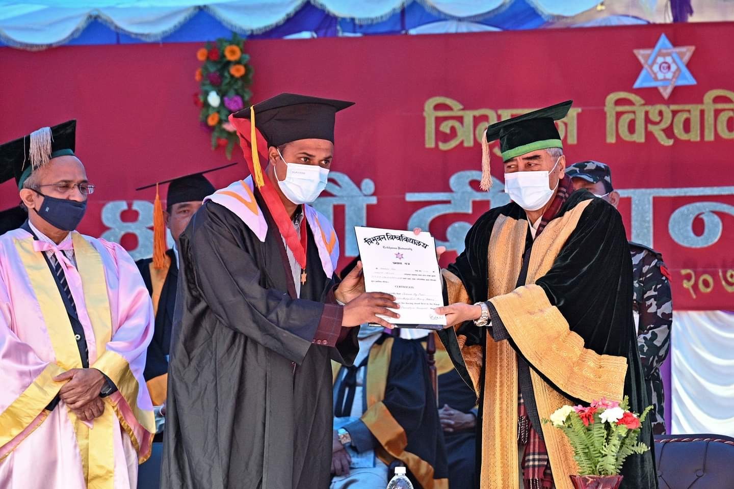 पोखरा, पुस ५ गते ।पोखराका विश्वास राज पौडेल त्रिभुवन विश्वविद्यालय अन्तर्गत एम फिल तहमा सर्वोत्कृष्ट भएका छन् । व्यवस्थापन संकायका विद्यार्थी पौडेल २०७६ सालको एम फिल तहको परिक्षामा ३.९६ जीपीए ल्याएर सवोत्कृष्ट भएका थिए । काठमाण्डौमा सोमवार सम्पन्न त्रिविको ४७ औँ दीक्षान्त समारोहमा त्रिभुवन विश्वविद्यालय प्राध्यापक संघ शहीद उप–प्राध्यापक हरिराज अधिकारी स्वर्ण पदकबाट उनि विभुषित भए ।
