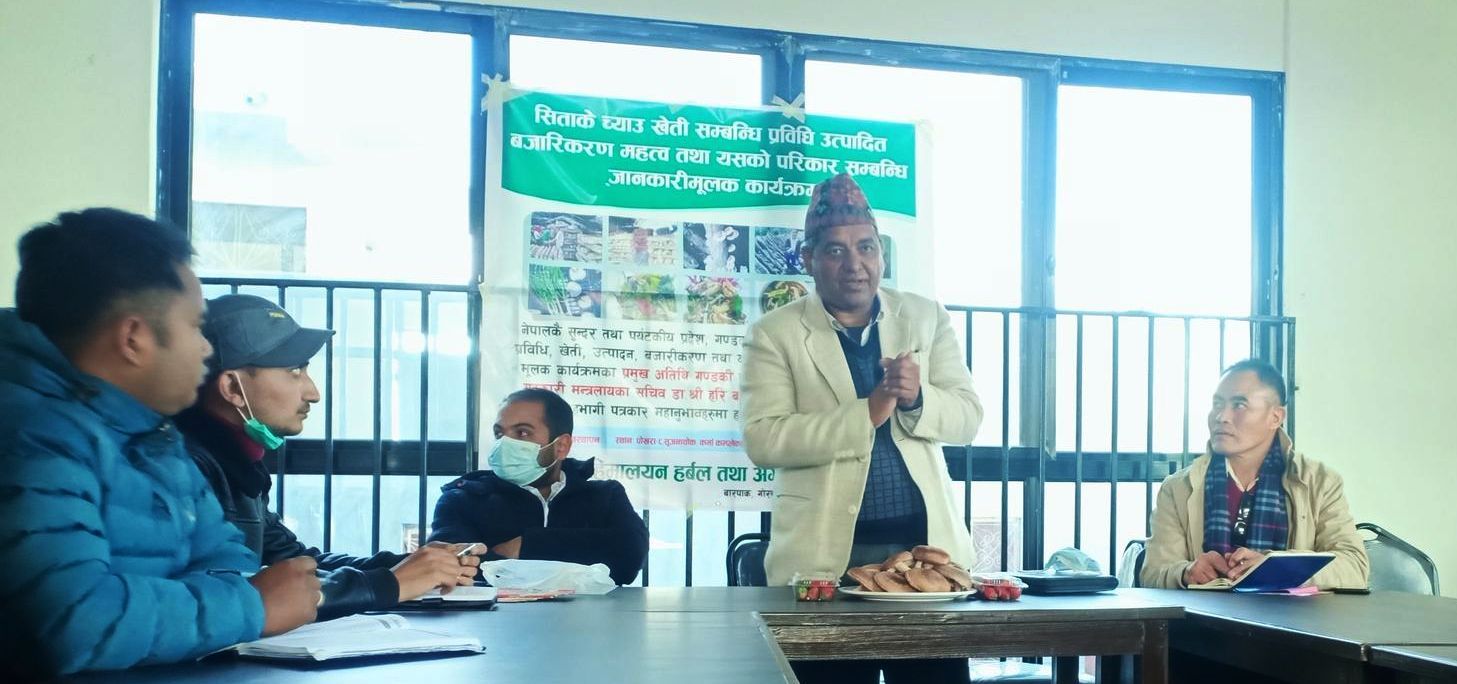 पोखरा ।सिताके च्याउ खेती सम्बन्धी प्रविधि , उत्पादन, बजारीकरण , महत्व तथा यसका परिकार सम्बन्धी जानकारीमुलक कार्यक्रम पोखरामा सम्पन्न भएको छ । गोर्खा वारपाकमा रहेको एस.जी हिमालयन हर्बल तथा अर्गानिक फार्मको आयोजनामा उक्त कार्यक्रम सम्पन्न भएको हो । कार्यक्रममा बोल्दै प्रमुख अतिथि गण्डकी प्रदेश भूमि व्यवस्था, कृषि,सहकारी तथा गरिबी निवारण मन्त्रालयका सचिब डा.हरि बहादुर केसीले सिताके च्याउ स्वास्थ्यका लागि लाभदायी व्यवसायका लागि फलदायी भएको बताए ।