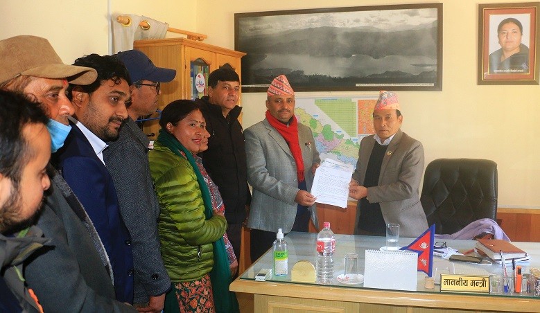 महासंघ गण्डकी प्रदेशका अध्यक्ष कालिदास सुवेदीले आज गण्डकी प्रदेशका वन, वातावरण तथा भू–संरक्षण मन्त्री दिपक थापालाई कार्यकक्षमा ज्ञापन पत्र बुझाउदै  संघीय वन नियमावलीको मस्यौदाको नियम २३(३) मा सामुदायिक वनको ५० प्रतिशत  काठ जिल्लावन पैदावार आपुर्ति समितिमा उपलव्ध गराउनु पर्ने व्यवस्था तत्काल खारेज गर्न माग गरिएको छ ।