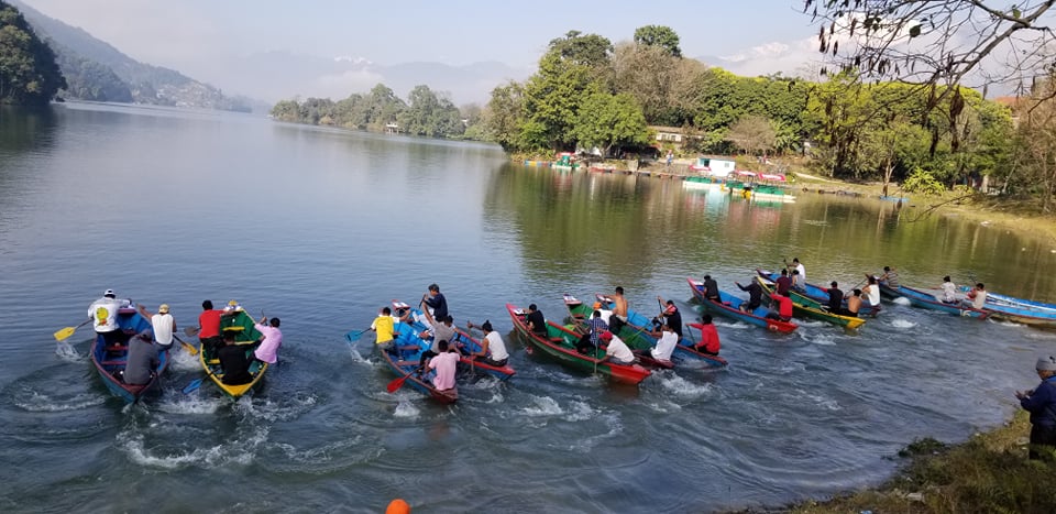 विभिन्न ११ समुहले भाग लिएको प्रतियोगितामा २० मिनेट ४५ सेकेण्टमा निश्चित दूरी पार गर्दै स्विमिङपुल ए ले प्रथम स्थान हाँसिल गरेको हो । २० मिनेट ४८ सेकेण्डमा दूरी पार गरेको फेवा घाटले दोश्रो तथा २० मिनेट ५० सेकेण्डमा दौड पुरा गर्दै बाराही घाटको सी टोलीले तेश्रो स्थान हाँसिल ग¥यो ।