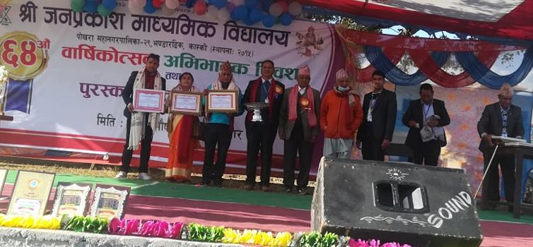 उनले कुनै समय सरकारी विद्यालयमा विद्यार्थीको संख्या बढाउन भर्ना अभियान लिएर जानु पर्ने बाध्यता रहेकोमा शैक्षिक गुणस्तरमा सुधार हुँदा विद्यार्थीको कोटा तोक्नु पर्ने अवस्था आएको उल्लेख गरे । उनले विद्यार्थी संख्याको आधारमा मेगा विद्यालयका रुपमा अगाडी बढाउनु पर्ने सुझाव दिदै, विपन्न बर्गका बालबालिका शिक्षाबाट बंचित हुन नपर्ने वातावरण सिर्जना गर्नु पर्नेमा समेत जोड दिए । विद्यालयका प्रधानाध्यापक शेखरनाथ शर्माले बार्षिक प्रगती प्रतिवेदन पेश गर्दै, साविक लेखनाथ क्षेत्रकै शैक्षिक हबका रुपमा जनप्रकाश उच्च मा.वि लाई अगाडी वढाईने उल्लेख गरे । शैक्षिक गुणस्तर सुधारका लागि बालमैत्री प्रणालीको विकास गरिएको बताए । कार्यक्रममा बार्षिक शैक्षिक कार्यक्रममा उत्कृष्ट विद्यार्थीहरुलाई पुरस्कार वितरण एवं सम्मान समेत गरिएको थियो ।
