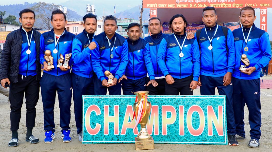 “स्वास्थ्यको लागि एक घण्टा व्ययाम, नागरिकहरुका लागी नौलो आयाम” भन्ने मूल नाराका साथ गत पुष २६ गतेबाट सञ्चालन भएको प्रतियोगितामा टि वर्गरका भुपेन लिम्वु सर्वोत्कृष्ट खेलाडी घोषित हुँदै नगद ट्रफी सहित नगद १० हजार हात पारेका छन् भने उनी उत्कृष्ट मिडफिल्डर हुँदै थप नगद ५ हजार समेत हात पारे । प्रतियोगिता अन्तर्गत अन्य विद्यामा अन्तर्गत उत्कृष्ट गोल रक्षकमा टि वर्गरका मिन बहादुर बस्नेत, उत्कृष्ट डिफेण्डरमा एविसीका विष्णुलाल श्रेष्ठ, उत्कृष्ट फवार्डमा टि वर्गरका नगेन लिम्वु घोषित भए । उनीहरुले जनही नगद ५ हजारका साथमा ट्रफी हात पारे ।