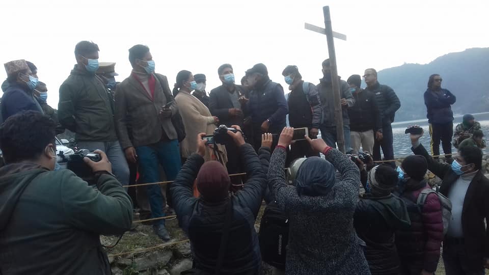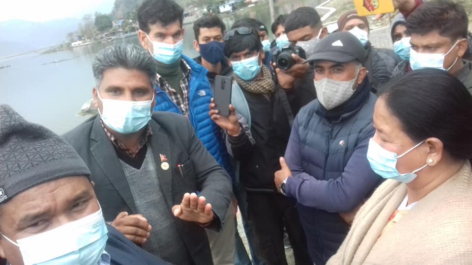 पोखरा महागनरपालिकाबाट अनुमति नलिइकनै ताल किनारको जग्गामा सरचना निर्माण भएको हो । संरचना निर्माण भएपछि महानगरले पटक पटक रोक्न आग्रह गरेपछि अटेर गदै निर्माण गरिएको हो । सरचना निर्माण गर्ने ब्यक्तिहरुलाई महानगरमा बोलाएर रोक्न आग्रह गरेको थियो । उनीहरुले आफनो नाममा जग्गा रहेको भन्दै संरचना निर्माणलाई निरन्तरता दिए । फेरी महानगरले सोही ठाँउमा नगर प््रहरीलाई डियूटीनै खटाएर निर्माणमा रोक लगायो । अवैध रुपमा निर्माण भएको संरचनाको गण्डकी प्रदेशका उर्जामन्त्री हरिशरण आचार्य र पोखरा महानगरपालिकाका उपप्रमुख मञ्जुदेवी गुरुङले सोमबार स्थलगत निरिक्षण गर्नुभयो ।