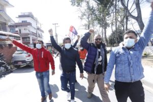 युवा संघले ब्यानरमा मापसे सरकार मुर्दाबाद, स्थानीय तह निर्वाचन तुरुन्त गर, संविधान र लोकतन्त्रको रक्षा गर नारा लेखिएको ब्यानर सहितको कालो बेलुन उडाएको हो ।