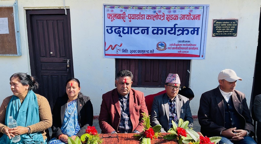 स्याङ्जाको आँधीखोला गाउँपालिका वडा नम्बर ३ स्थित फुलबारी पुवाडाडा कालोपत्रे सडकको उद्घाटन गरिएको छ । गाउँपालिका अध्यक्ष सुधिर कुमार पौडेलद्वारा शनिबार एक कार्यक्रमका बीच निर्माण सम्पन्न कालोपत्रे सडकको उद्घाटन गरिएको हो ।