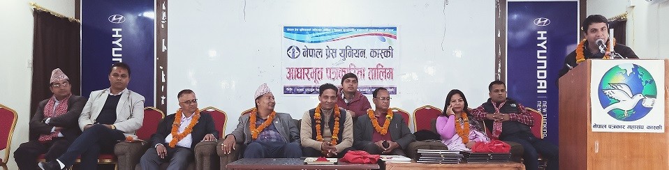 पोखरा, फागुन २१ गते । नेपाल प्रेस युनियन कास्कीले आयोजना गरेको आधारभूत पत्रकारिता तालिमसकिएको छ । बिहीबारदेखि सुरु भएको तालिम शनिबार समापन भएको हो । समापनका अवसरमा प्रशिक्षार्थीहरुलाई प्रमाणपत्र वितरण गरिएको थियो । तालिममा सहभागी ५५ जना प्रशिक्षार्थीहरुलाई गण्डकी प्रदेशका शिक्षा, संस्कृति, विज्ञान प्रविधि तथा सामाजिक विकास मन्त्री मेखलाल श्रेष्ठले प्रमाणपत्र वितरण गरेका थिए । समापन कै अवसरमा नेपाल प्रेस युनियन कास्की शाखाले ३० जना भन्दा बढिलाई नयाँ सदस्यता दिएको छ ।
