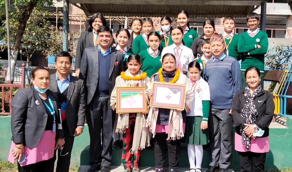 पोखरा, फागुन २२ गते ।काइण्डनेस क्लब मदरल्याण्ड बोडिङ स्कुल पोखराको दोस्रो वर्षमा प्रदेश गरेको अवसरमा सम्मान कार्यक्रम गरेको छ । क्लबले पोखराकी समाजसेवी बालिका प्रिन्सा रेग्मीलाई सम्मान गरेको छ । सानै उमेरमा समाज सेवामा सक्रिय रेग्मीलाई क्लबले नगद १० हजार, दोसल्ला र सम्मानपत्रले सम्मान गरेको हो ।