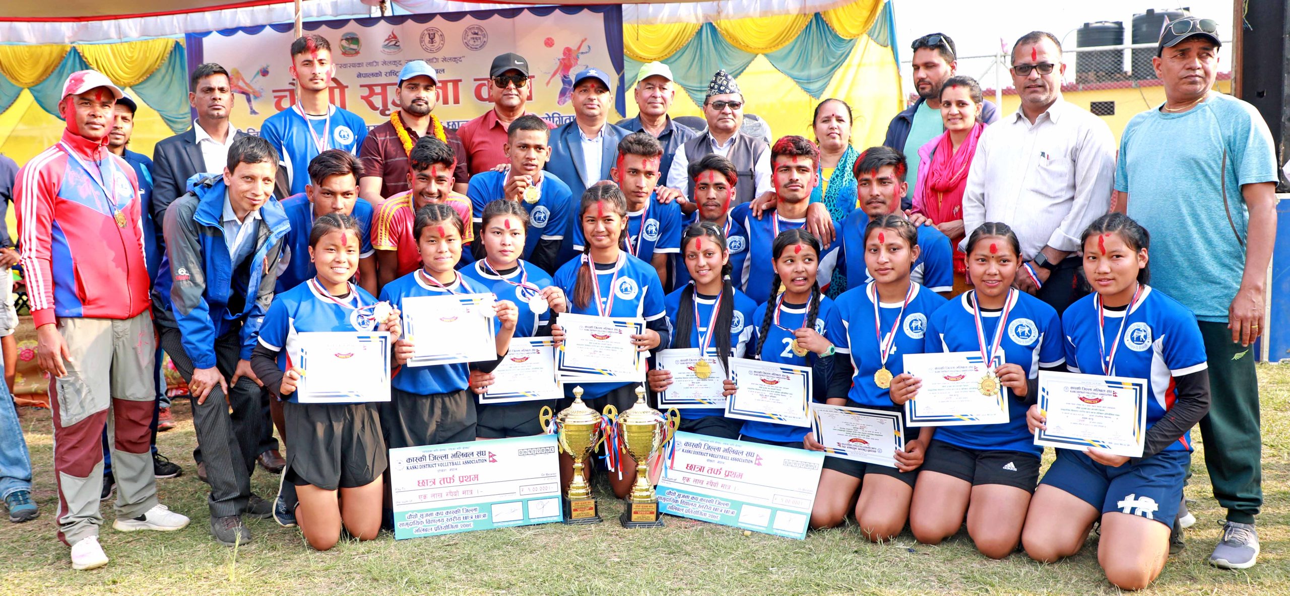 बिजयीहरुलाई सृजना विकास केन्द्रका अध्यक्ष ईन्द्रप्रसाद पौडेल, कास्की जिल्ला भलिबल संघका अध्यक्ष भीम पराजुली, कास्की जिल्ला खेलकुद विकास समितिका अध्यक्ष तोरण बानिया, पोखरा महानगर खेलकुद विकास समितिका सदस्य सचिव सुवास खड्कासहित सृजना विकास केन्द्र र कास्की जिल्ला भलिबल संघका पदाधिकारीलगायतले पुरस्कार वितरण गरेका थिए ।