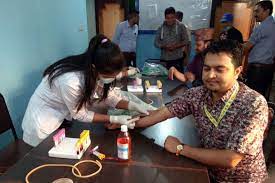 जिल्लाका १६६ पत्रकारको स्वास्थ्यपरीक्षण गरिएको छ । नेपाल पत्रकार महासङ्घको ६७औँ स्थापना दिवस र भरतपुर अस्पतालको वार्षिकोत्सवको अवसरमा आज रगतको नमूना सङ्कलन गरिएको हो । भरतपुर अस्पतालको प्रयोगशाला प्रमुख उर्मिला कँडेलका अनुसार १६६ पत्रकारको रगतको नमूना सङ्कलन गरिएको छ । उक्त नमूनाबाट कलेजो, मिर्गाैला रोग, मधुमेह, थाइराइड, रगतमा बोसोको मात्रा, सिविसी (ब्लड इन्फेक्सन), तीन महिनासम्म मधुमेहको अवस्था जनाउने एचबिए वान सि, रगतमा हेमोग्लोबिनको मात्रा, रक्त समूह लगायत ८ प्रकारका परीक्षण गरिने छ ।