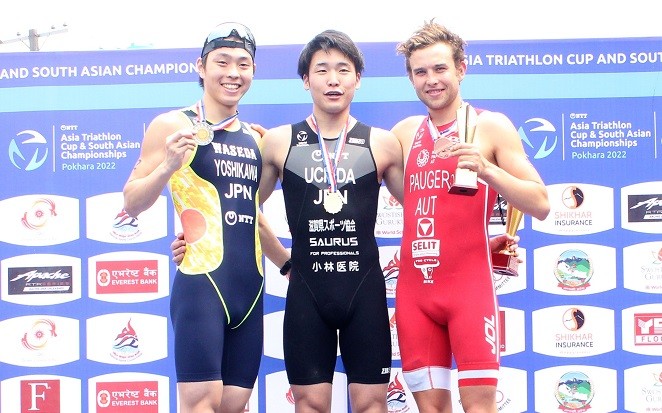 नेपाल ट्राईयाथलन संघको आयोजनामा पोखरामा भएको एशिया ट्राईयाथलन कपको उपाधी पुरुष तर्फ जापानका जेन्टा युचिदा र महिला तर्फ काजाकिस्तानकी इकातेरिना सावालिनाले उचालेका छन् ।७५० मिट पौडी, २० साईक्लिङ्ग र ५ कि.मि. दौडको दुरी जेन्टाले ५३ मिनट १४ सेकेन्ड तथा इकातेरिनाले १ घन्टा ०२ मिनट २० सेकेन्डमा पुरा गर्दै उपाधी उचालेका हुन् । पुरुष तर्फ दोश्रो स्थानमा जापानकै क्योतारो ओसिकावा र तेश्रो स्थानमा अष्ट्रियाका लिओन पगर रहे । क्योतारोले उक्त दुरी ५३ मिनट २२ सेकेन्डमा र लिओनले ५३ मिनट ३६ सेकेन्डमा पुरा गरे ।