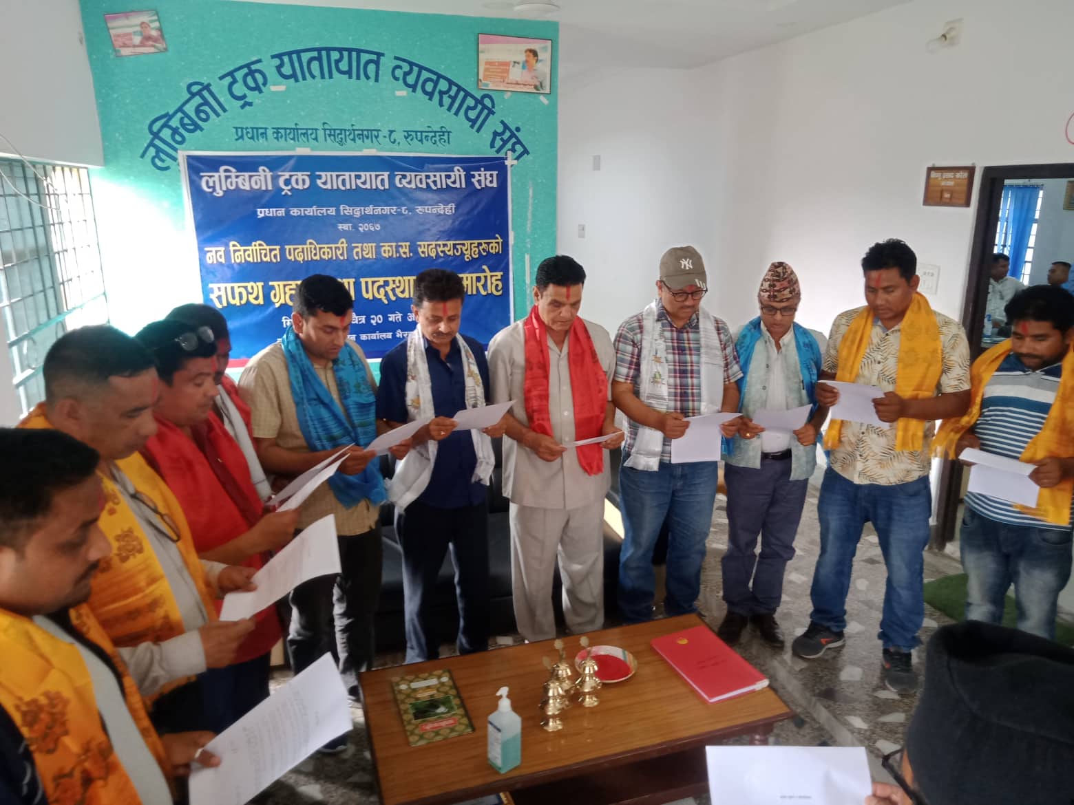 भैरहवा, चैत २० गते ।लुम्विनी ट्रक यातायात ब्यबसायी सघं शिद्धार्थनगर भैरहवाको अध्यक्षमा पुनः बिष्णुु प्रशाद खरेल सर्वसम्वत निर्वाचीत भएका छन् । सघंको १० औ साधारण सभा तथा पाचौ अबिधेसनबाट संस्थापक खरेल पाचौं कार्यकालकोलागी सर्वसम्वत अध्यक्ष भएका हुुन् । निर्वाचीत अध्यक्ष खरेलले निर्वाचन सगैं आफुुमाथी थप जिम्मेवारी आएको भन्दै सवै ब्यबसायी सघं सहकार्य गरेर ब्यबसायीको हकहितमा लाग्ने बताए । उनले नयाँ तथा पुुराना साथीहरुलाई मिलाएर लैजाने र समन्वयमा काम गर्ने प्रतिबद्धता समेत जनाए ।