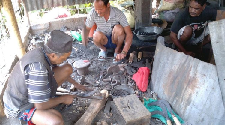 सात वर्ष मलेसियामा दुःख गरेपनी भनेजस्तो राम्रो कमाइ नभएपछि फर्केर गलकोटको हटिया बजारमा आरन सञ्चालनमा ल्याएको माइलो भाइ कृष्णले जानकारी दिनुभयो । “विदेशमा केही हुन्छ की भनेर गइयो, आखिर दुःखनै रैछ, त्यसैले पुख्र्याैली पेसा जोगाउँदै आरन व्यवसाय गर्ने निधोका साथ हटिया बजार झरेका थियौं”, उहाँले भन्नुभयो, “आरन व्यवसायसमेत परिवर्तन भएको छ, अहिले हामीले फलामका भाँडाकुडा र औँजार बनाउनै भ्याइन छोड्यौँ, अहिले हामीले तामाका भाँडा त्यो पनि सजावटका सामग्री, फिल्टर, जग, नौमती बाजा बनाउन थालेका छौं ।”