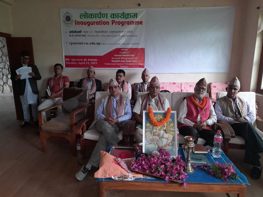 पोखरा । विन्दुवासिनी संस्कृत विद्यापीठ पोखराको अनुसन्धानात्मक व्यवस्थापन एकाइद्वारा प्रकाशित अनुसन्धानात्मक जर्नल ʿकौमोदकीʾ लोकार्पण गरिएको छ । जर्नलको विश्वविद्यालयका शिक्षाध्यक्ष भीमप्रसाद खतिवडाले एक कार्यक्रमकाबीच मङ्गलबार एक कार्यक्रमा बीच लोकार्पण गर्नुभयो । उक्त अवसरमा उहाँले विद्यापीठको वेबसाइड प्रयोग पनि शुभारम्भ गर्नुभयो ।