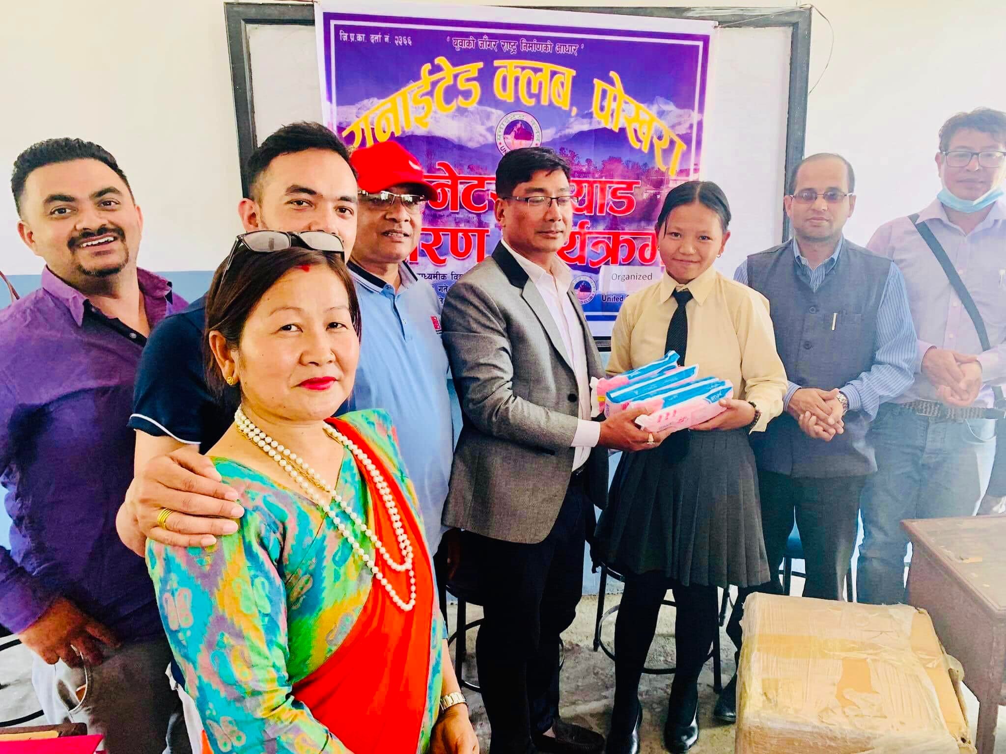 युनाईटेड क्लवद्धारा छात्राहरुलाई सेनिटरी प्याड वितरण