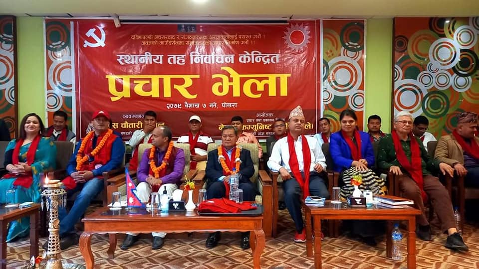 उहाँले एमाले २०७४ सालको भन्दा बलियो पार्टी भएकाले बैशाख ३० गते हुने स्थानीय निर्वाचनमा एमाले एक्लैले जित्ने दावी गर्नुभयो । कार्यक्रममा प्रेस चौतारी नेपाका अध्यक्ष गणेश बस्नेत, एमाले प्रदेश कमिटि अध्यक्ष नवराज शर्मा, एमाले प्रदेश कमिटि उपसचिव रश्मी आचार्य, अग्रज पत्रकार निर्मला शर्मा, प्रेस चौतारी उपाध्यक्ष गणेश पाण्डे, प्रदेश प्रचार विभाग उपप्रमुख पुण्य पौडेल, प्रेस चौतारी गण्डकी प्रदेश अध्यक्ष इन्द्रप्रसाद प्रौडेल लगायतले निर्वाचनमा प्रचारको कामलाई प्रभावकारी बनाउदै एमालेलाई जिताउने गरी लाग्न आग्रह गर्नुभयो ।