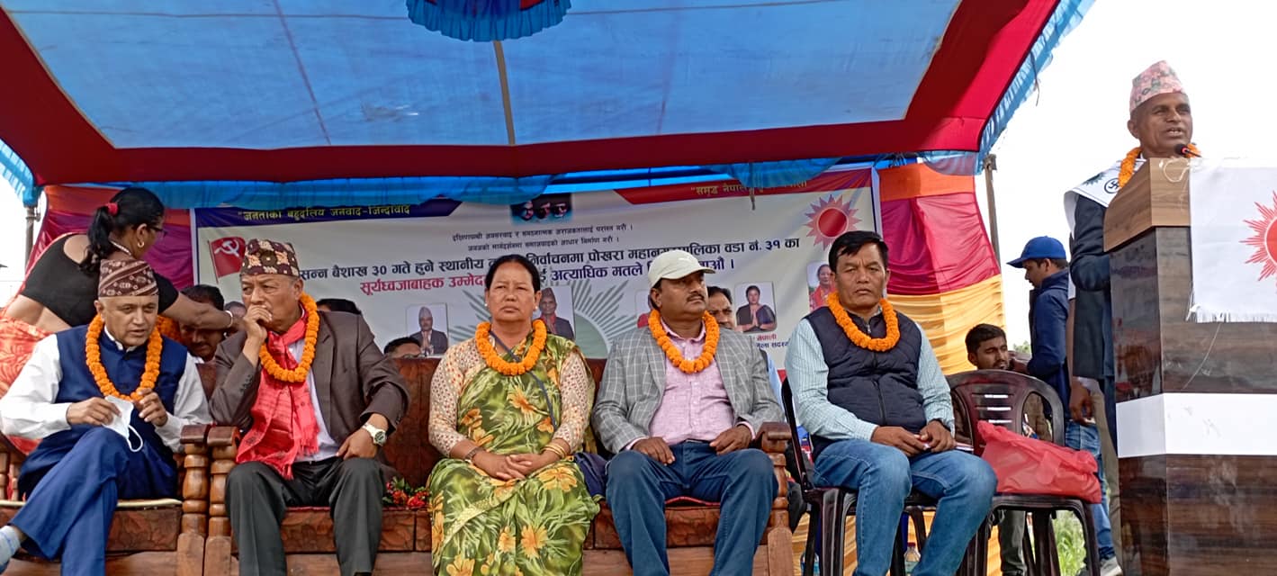 उनले एमालेले यस पटक अनुभबी र सफल ब्यक्ति कृष्ण थापालाई मेयर र देशकै सफल उपमेयर भएर कार्य सम्पादन गरि सक्नु भएकी मन्जुदेबी गुरुङलाई उपमेयरको उम्मेदवारको रुपमा अगाडी सरेको भन्दै एमालेको जित सुनिश्चित रहेको दाबी पनि गरे । पोखरा ३१ मा पनि एमालेले अनुभबी र सक्षम ब्यक्तिलाई उम्मेदवार बनाएकोले सुखी र समृद्ध ३१ नम्बर वडाको लागि एमालेको बिकल्प नरहेको बताए ।