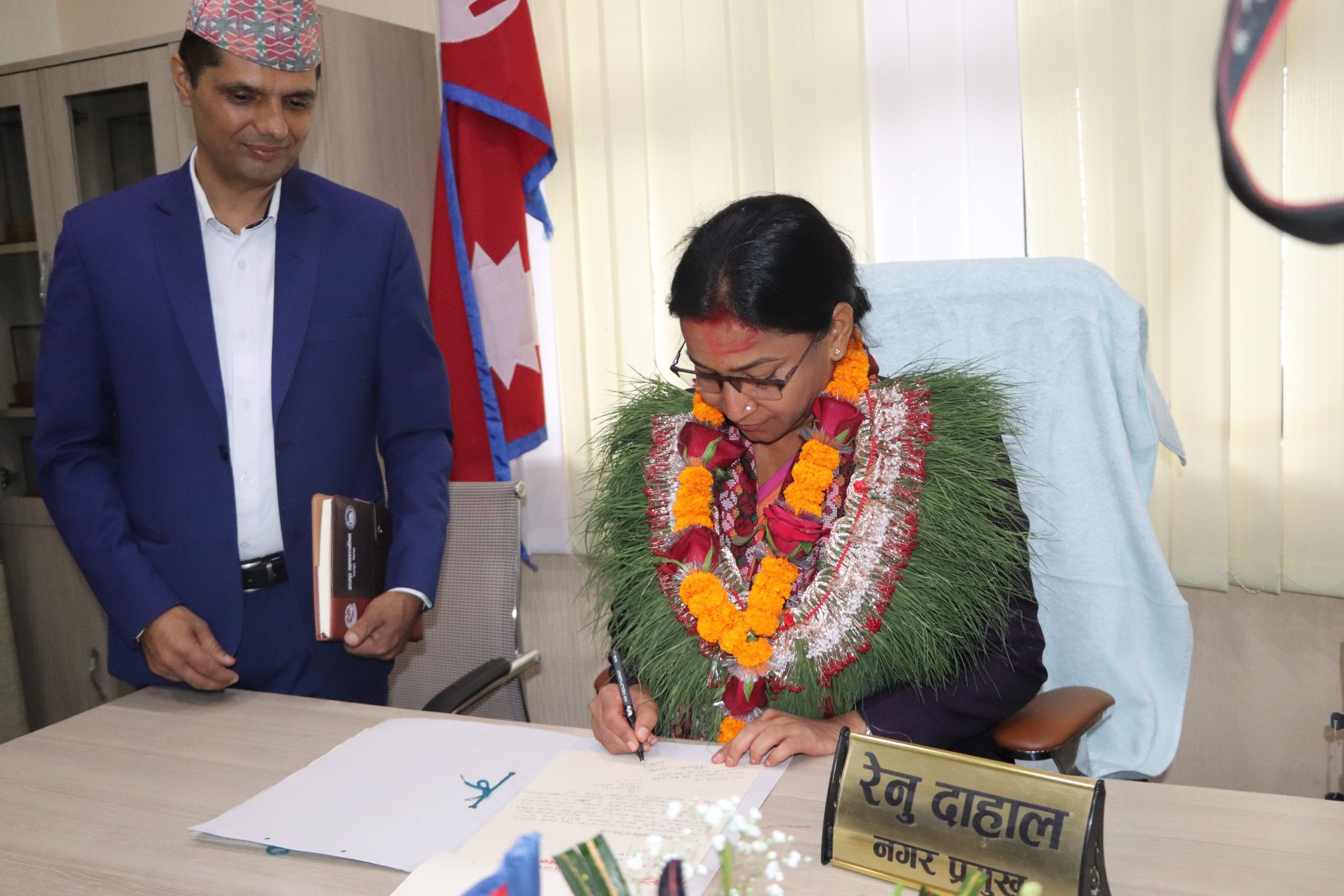 भरतपुर महानगरपालिकाको पदभार ग्रहण गरेसँगै नगरप्रमुख रेनु दाहालले दुई महत्वपूर्ण निर्णय गर्नुभएको छ । महानगरभित्रका बासिन्दालाई मासिक सात हजार लिटर खानेपानी निःशुल्क र रु एक लाख बराबरको छोरी बिमा कार्यक्रमको निर्णय गरिएको छ ।