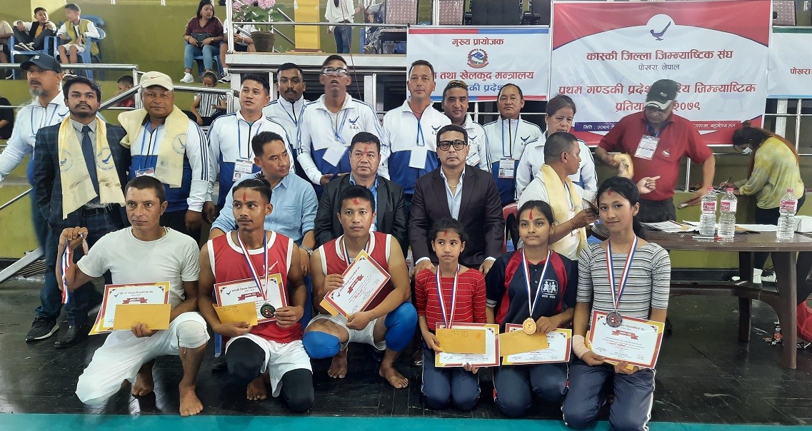 कास्की जिल्ला जिम्न्यास्टिक संघले प्रतियोगिता आयोजना गरेको हो । महिलातर्फ सीता कुमारी प्रथम हुँदा सुबि भासिका द्वितीय र कृति खत्री तृतीय भइन् । यस्तै, पुरुषतर्फ रोशन सर्वोत्कृष्ट रहँदा कास्कीकै विशाल पुन द्वितीय र बाग्लुङका कृष्ण कँडेल तृतीय भए । प्रतियोगितामा विजेताहरुले नगदसहित मेडल र प्रमाणपत्र प्राप्त गरे । कार्यक्रमका प्रमुख अतिथि गण्डकी प्रदेशका युवा तथा खेलकुद मन्त्री राजीव गुरुङ, गण्डकी प्रदेश खेलकुद परिषद्का उपाध्यक्ष ध्वजकुमार गुरुङ, जिम्न्यास्टिक संघका केन्द्रीय सदस्य योगेन्द्र गुरुङलगायतले उत्कृष्ट खेलाडीहरुलाई पुरस्कार प्रदान गरे ।